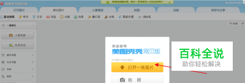进入到美图秀秀网页版,选择图片美化,选择打开一张图片,我这以一幢大楼为图