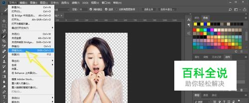 抠图完成之后,我们在ps的主界面上面,点击左上角的文件图标,如下图所示,