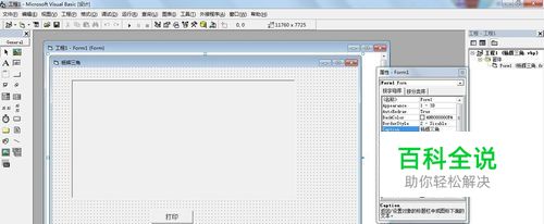打开VB6.0,新建一个工程,在窗体中添加一个命令按钮,caption改为“打印”,添加一个图片框控件,用于打印输出,将Form1窗体的caption属性改为“杨辉三角”,将界面设置成下图: