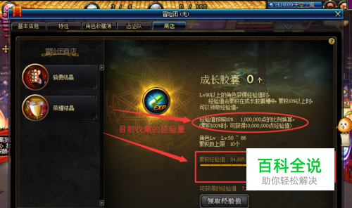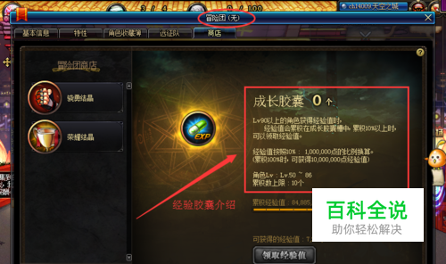 游戏玩家可以点击打开冒险团中查看当前已经收集经验的数量以及查看已经产生的胶囊量。