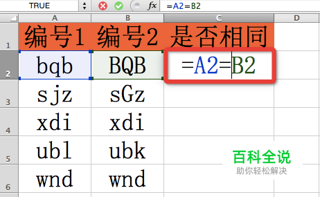 如果需要判断单元格中的编号严格区分字母大小写是否相同。可以使用EXACT函数,参数引用需要判断的数据。
