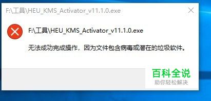 无法完成操作,因为文件包含病毒或潜在的垃圾软件