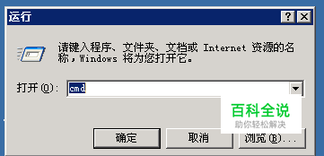按“windows键+R”打开运行对话框,输入命令“cmd”,回车打开DOS窗口。