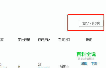 点击列表上方商品回收站进入,我们可以看到自己册除的产品。点击恢复即可。不过大家注意一点,只能恢复30的产品。大家册除时要慎重哦。