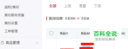 然后我们可以在上方看到:全部,上架,售罄,下架 三个选项。