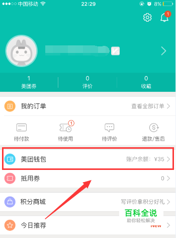 然后我们可以看到【美团钱包】。然后可以看到你的账户余额有多少钱,我们点击美团钱包进去