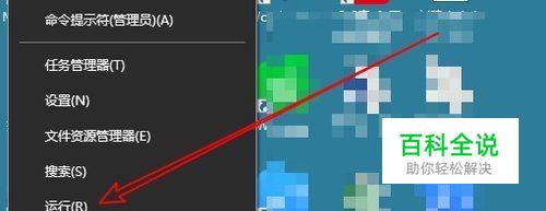 在Windows10桌面,我们右键点击左下角的开始按钮,在弹出的菜单中选择“运行”菜单项。