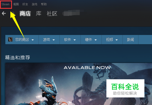 登陆成功后,点击客户端左上角的steam菜单,如下图所示