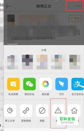 登录上你的微博账号,然后打开你想要做成举报链接的帖子,在右上角有个小菜单点击下,会出现分享、收藏、复制链接等操作,我们这时候需要的是“投诉”功能。