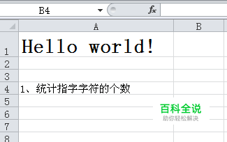 第二个例子,我们来看如何查找字符串中指定字符的位置? 举例查找字符d在Hello world!中的位置,输入公式=FIND("d",A1),结果是11,我们来数数看是不是。。。。没错,find()函数还是明察秋毫的!现在似乎离我们的目标已经不远了。