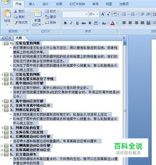 打开ppt文件,点击左侧幻灯片后面的:“大纲”选项,然后鼠标选中所有文字,复制—粘贴到新建的Word文档中。