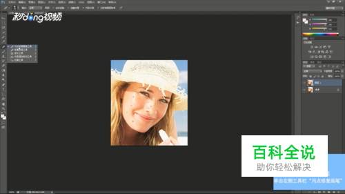 按“Ctrl+J”复制一层图层,鼠标左键单击左侧工具栏的“污点修复画笔”。