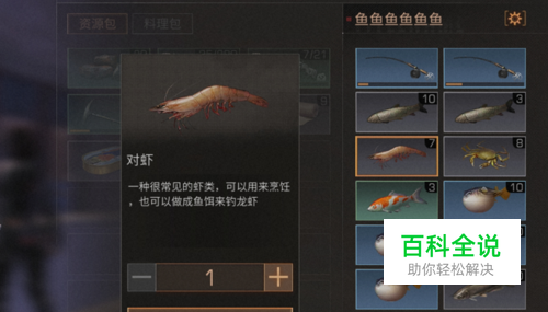 如图,在我们钓上对虾后,介绍里提到是可以用来做虾饵的。