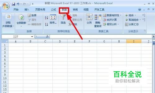 打开excel表格文件,在菜单栏中选择“数据”选项卡,如图: