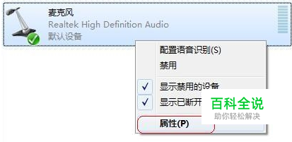 这是出现一个“麦克风”设备,右击“麦克风”,点击“属性”