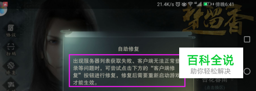 假如我们遇到了楚留香服务器获取失败,无法正常登录怎么办的情况,我们在这里就需要点击下“修复”,如图。