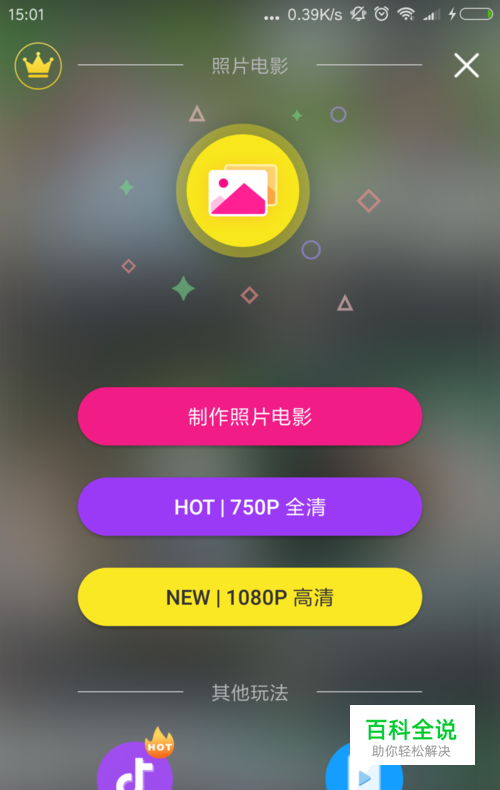 点击美册相册视频 打开中间的紫色图标你会看到图片的这样 然后点击左下角的文字视频