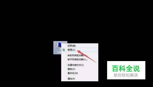 首先,鼠标右键点击“我的电脑”图标,点选“管理”选项。
