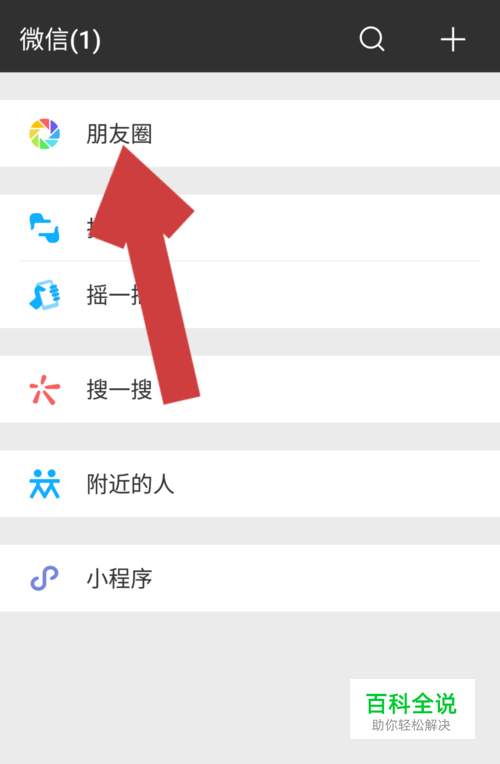 在微信的发现页中,点击“朋友圈”一栏,进入我们的微信朋友圈。