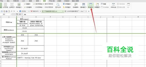 如果我想要将标题栏的一列总是在最上方显示,当我拖动下面的表格,看下面的数据的时候,也显示出来,就要用到冻结窗格了。 选择这一行内容,在属性栏中看到有一个冻结窗格的图标。点击一下。 如下图所示位置。