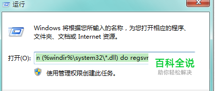 如何注册Windows\system32\下的所有.dll和.ocx文件? 在开始->运行(win+r)下输入命令: cmd /c for %i in (%windir%\system32\*.dll) do regsvr32.exe /s %i cmd /c for %i in (%windir%\system32\*.ocx) do regsvr32.exe /s %i