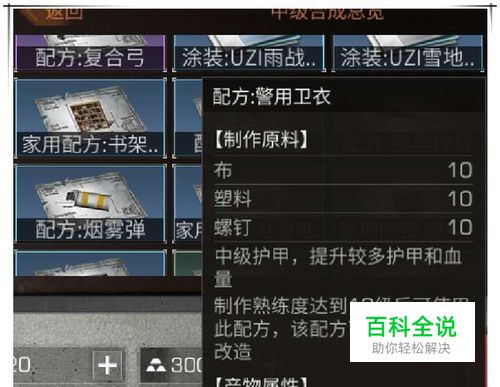 而获取警用卫衣配方,可通过配方研究台的中级配方合成来获取,当然机率并不大,可能需要好几次或十几次,才有可能得到。