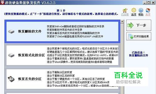 下载后安装运行起来,选第一个功能 恢复删除的文件