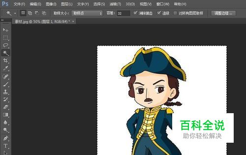 第三步:在左侧工具栏中选择“魔棒工具”,选中背景区域。
