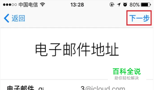 输入一个电子邮件地址,也就是Apple ID账号,点击右上角的“下一步”。在弹出来的询问窗口点击“继续”。