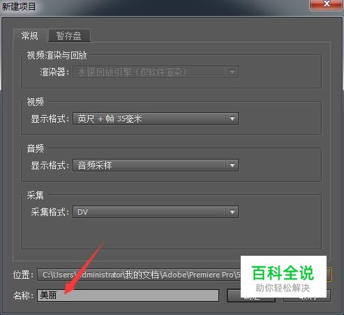 首先,打开Pr5.5,在出现的界面上点击新建项目,在底部名称后的框中输入视频名称。