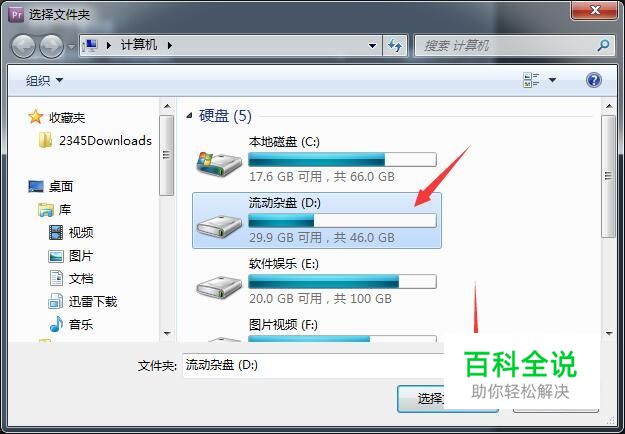 再点击浏览按钮,弹出选择项目的路径,比如选择桌面,点击选择文件夹。