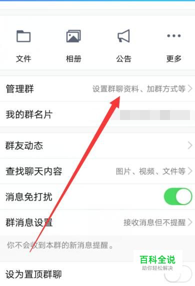 进入之后,找到自己管理的群资料页面,选择“管理群”,如图所示。