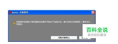安装PS时提示...计算机重新启动操作可能处态