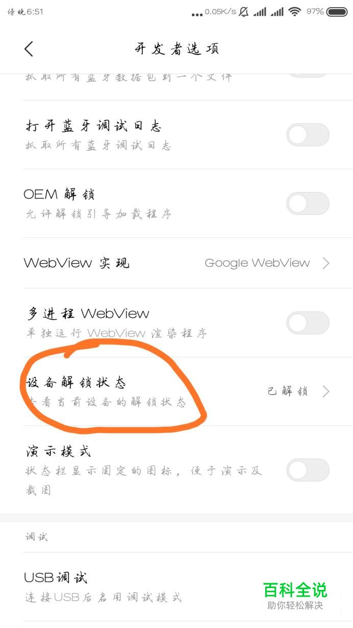 首先在手机设置里打开开发者选项。然后选择“设备解锁状态”。