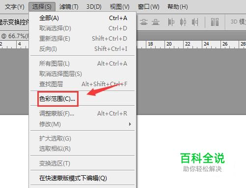 使用ps将我们的图片打开,然后选择logo图片,然后在选择菜单那里找到找到色彩范围选项,如图所示: