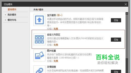 进入店铺装修,在首页添加一个自定义模板