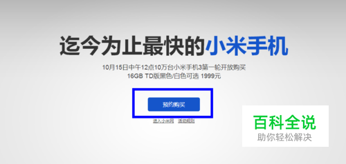 首先请打开小米3的的官方预约页面: http://p.www.xiaomi.com/zt/131010/index.html ,点击页面中的预约手机,如图所示