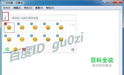 打开记事本软件,调出百度输入法.当我们 输入i时,表情输出功能即被调用.
