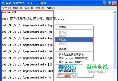 首先“新建记事本”复制下面代码! @echo off echo 正在清除系统垃圾文件,请稍等...... del /f /s /q %systemdrive%*.tmp del /f /s /q %systemdrive%*._mp del /f /s /q %systemdrive%*.log del /f /s /q %systemdrive%*.gid del /f /s /q %systemdrive%*.chk del /f /s /q %systemdrive%*.syd del /f /s /q %systemdrive%*.$$$ del /f /s /q %systemdrive%*.@@@ del /f /s /q %systemdrive%*.~* del /f /s /q %systemdrive%*.gts del /f /s /q %systemdrive%*.bak del /f /s /q %systemdrive%*.old del /f /s /q %systemdrive%*.wbk del /f /s /q %systemdrive%*.xlk del /f /s /q %systemdrive%*.ckr_ del /f /s /q %windir%prefetch*.* rd /s /q %windir%temp echo 清除系统垃圾完成! echo. & pause