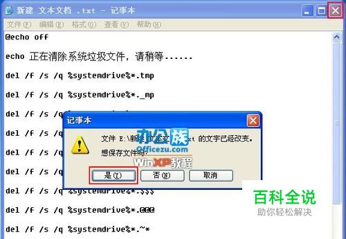 点击窗口左上角的“X”按钮关闭记事本,提示选择“是”。