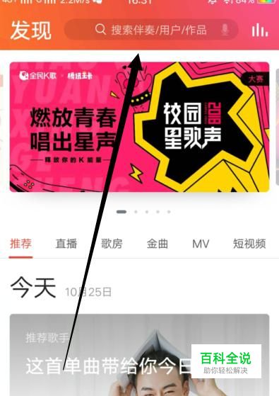 进入之后,点击图示位置搜索想要下载的伴奏,如图所示。