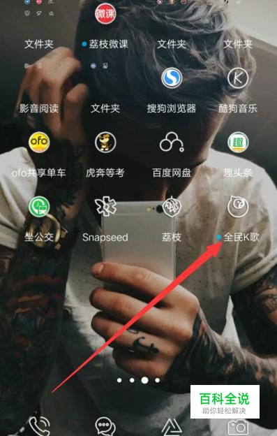 打开手机,找到全民K歌,点击并进入,如图所示。