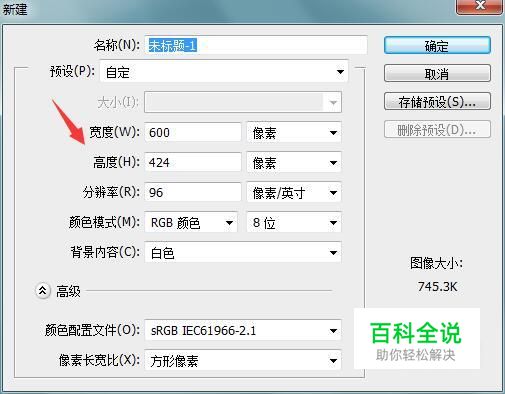 打开ps按下Ctrl+N键在弹出的对话框内设置参数如图所示: