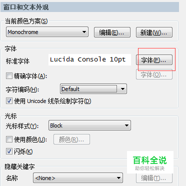 设置项中,有一个字体按钮,点击,会弹出一个字体设置对话框。