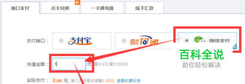 选择“微信充值”接口并输入选择你充值的金额数量 确认无误后点击