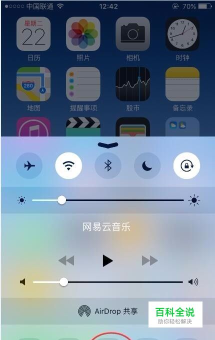 第一种开启方式,直接底部向上拉,可以拉出快捷菜单,在这里可以看到新增了一个功能图标,如图所示
