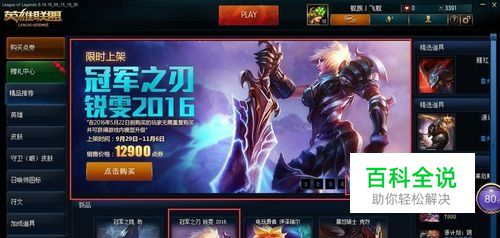 红框里的五或者下面的第二个都是购买2016冠军之刃皮肤的界面,点击。