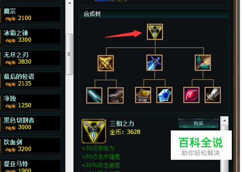 作为一名具备混合伤害的adc,同样有提升复杂丰富属性的装备——三相之力,第一件大件就要先憋出三相之力,提升攻击力,法术强度,法力值,生命值,移动速度,不啦不啦。