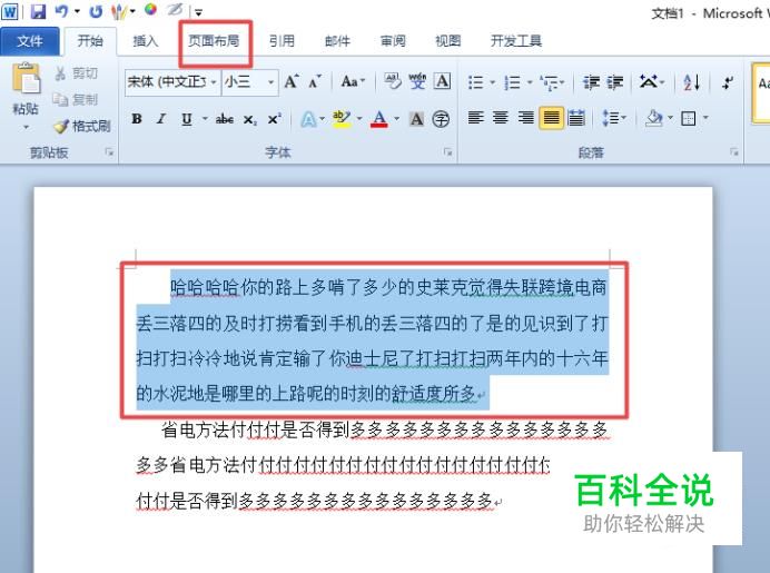 然后我们选中该文档中的一个段落,之后我们点击工具栏中的页面布局;