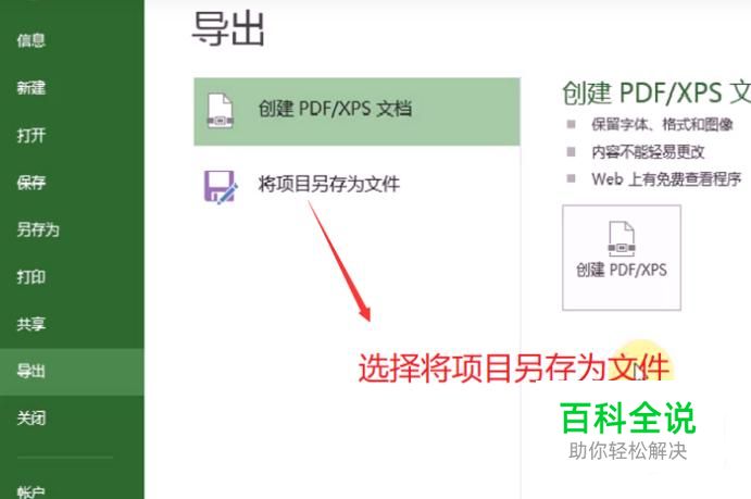 接下来在弹出的界面中我们选择将项目另存为文件,如下图所示